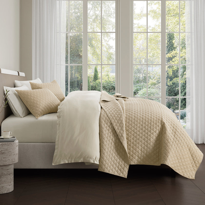Indulge in modern luxury with the J. Queen New York Premier Cotton Sateen Quilt Set.
