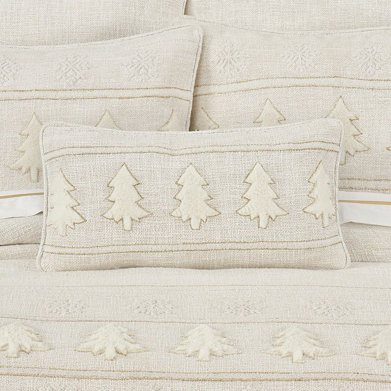 Deck your home decor for the holidays with the All That Glitters Boudoir Throw Pillow. Crafted with appliqued faux-fur Christmas Trees outlined with metallic gold thread which is woven into the fabric. Complete the All That Glitters collection and celebrate the season in style with luxurious Holiday bedding, bath and window from J. Queen New York.