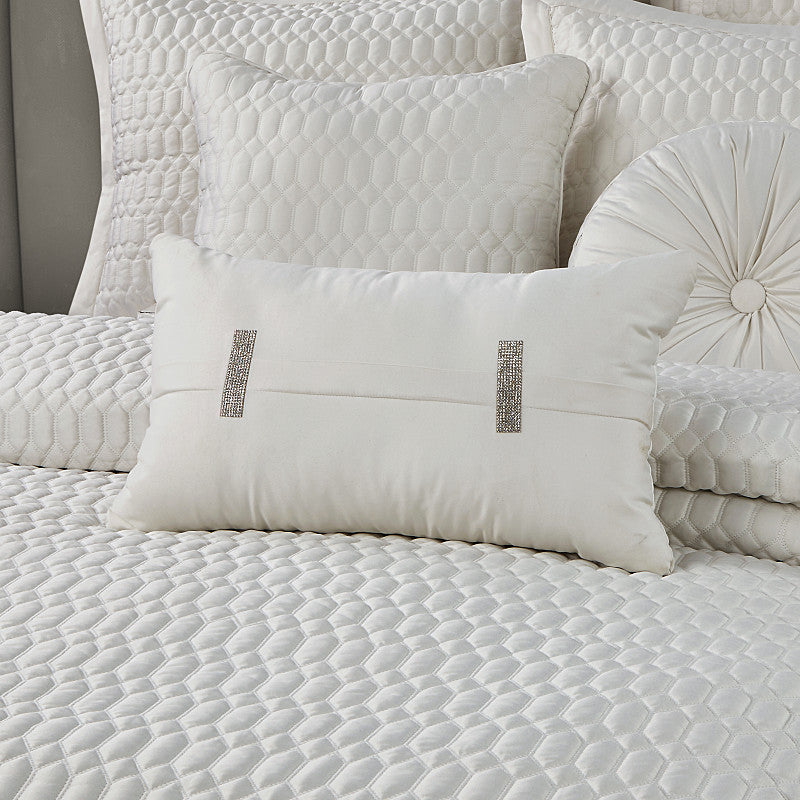 The Brilliance Boudoir Decorative Throw Pillow is crafted with an elegant plush to the touch satin. Featuring intricate details such as a decorative 1 inch solid pleat, centered horizontally, accented by a glamorous jeweled band for just the right amount of sparkle. Add the Brilliance Bedding collection to complete the look. Available in your choice of neutral color options.