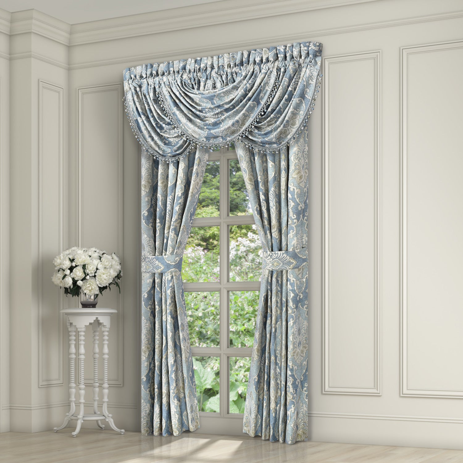 The Celtic Window Panel Pair showcases a highly detailed woven damask design in a lovely spa blue colorway. Each panel is lined to keep your room shaded and comfortable and the weighted hems allow the panels to drape beautifully. The luxurious panels include matching tiebacks to complete the fresh open airy look. Pair these panels with the Celtic Window Valance and Bedding collection to complete your bedroom decor.