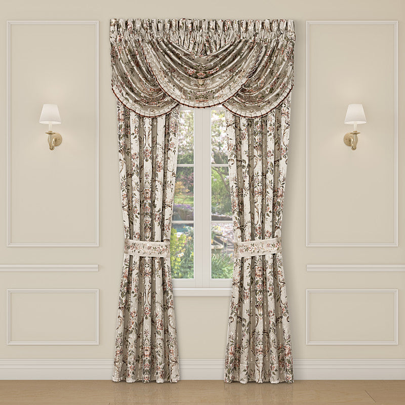 The Pecora Window Panels add an elegant decorator touch to your decor. The ivory panels are cut and sewn with a woven floral bouquet pattern. Each panel is cut by the same staring point to insure all panels match when hung side by side. The 3” header and 3 ” rod pockets make these easy to setup and they are lined with a solid white lining to keep your room cool and comfortable. The Pecora Window Valance is sold separately.