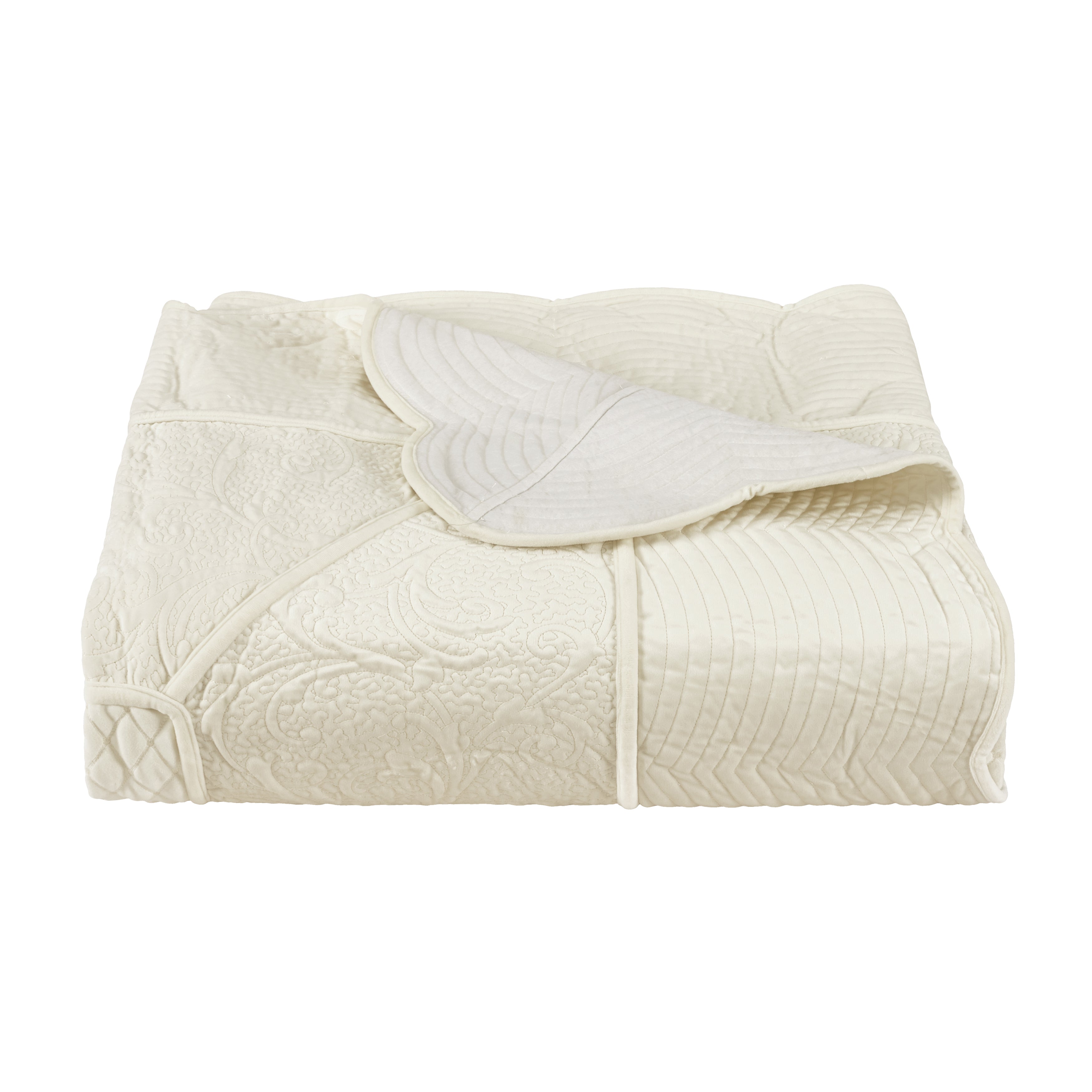 Celebrate the holidays at home with the Marissa Quilt Set, which offers lavish velvet softness and elegance. Detailed embroidery throughout the coverlet is combined with scalloped edges, layered with embroidery and an intricate vermicelli scroll design. The top section is quilted with a diamond pin dot in the center, creating a beautiful bordered look. Complete the Marissa collection and decorate the season in style with luxurious Holiday bedding, bath and window from J. Queen New York. Available in Christmas crimson, evergreen or winter white color options.
