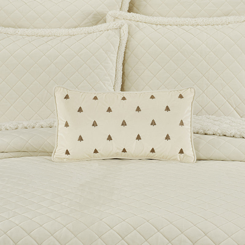 Dress up your space with plush Holiday style by adding the Christmas Tree Pillow Boudoir Throw Pillow. The plush velvet fabric is paired with embroidered Christmas trees and motifs, making this accent piece a charming elegant addition to your holiday décor. Complete the collection and decorate the season in style with luxurious Holiday bedding, bath and home decor from J. Queen New York. Available in stunning crimson red, gold, winter white, or evergreen color options.