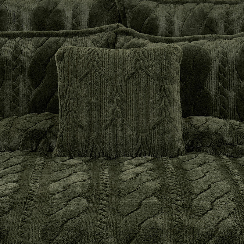 Cava offers a tufted 20 Inch Square Throw Pillow that is crafted from a soft plush fabrication. The intricate twisted cable design adds a sophisticated take on the Holiday Seasons and the sherpa reverse makes this accent completely reversible. The self-fabric trim is just another one of the beautiful details this statement pillow has to offer. Complete the Cava collection and decorate in style with luxurious Holiday bedding, bath and window from J. Queen New York. Available in evergreen, gold or winter white color options.