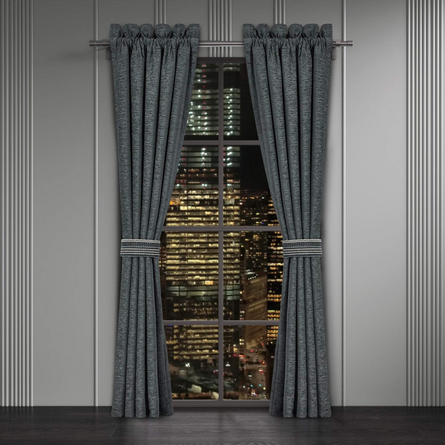 The Parallel Window Panels are constructed with a woven chenille in slate and grey tones. Fully lined to provide darkness for comfortable room temperatures and relaxation. The finishing touch is the matching tie-backs, which can create an open airy look and can be paired with the Parallel valance to complete your bedroom windows.