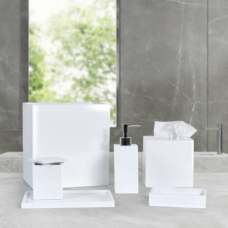 Cutting Edge ofrece un enfoque limpio, moderno y minimalista para organizar sus encimeras. Los accesorios en blanco óptico están hechos de resina resistente y duradera, con un acabado esmaltado transparente que les da un brillo sutil y una superficie fácil de limpiar. Combine estos accesorios de baño contemporáneos con las cortinas de ducha, toallas y alfombras de baño J. Queen New York para lograr un look de lujo total. Cada accesorio de baño se vende por separado.