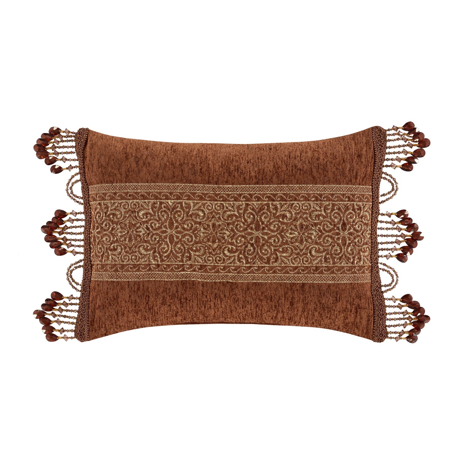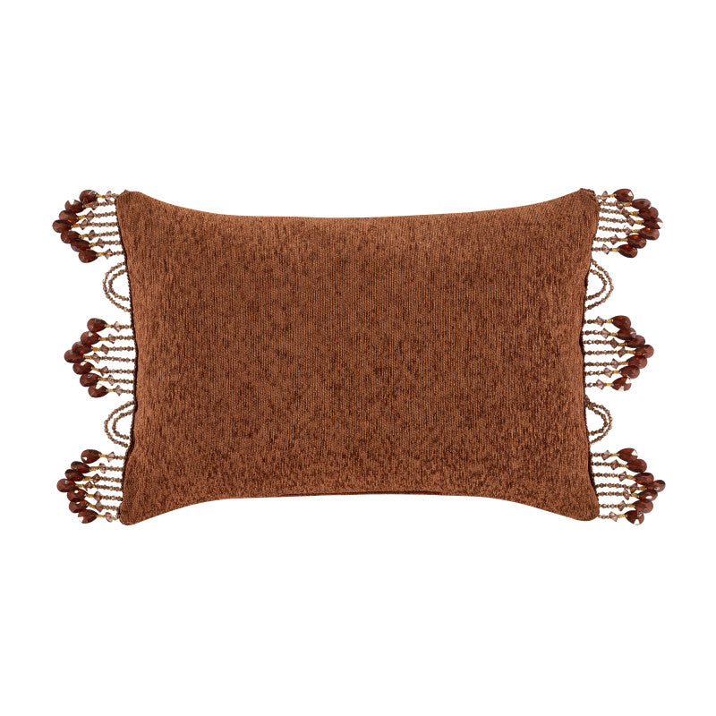 The Harvest Moon Boudoir Pillow is beautifully embroidered on a rich terracotta design house quality chenille fabric. This decadent pillow is embellished with a sparkling crystal tassel fringe and braided gimp to add a traditional luxury look to your bedroom decor.