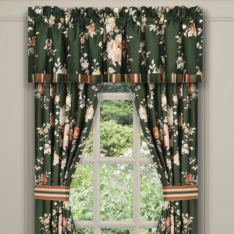 Completa la decoración de tu ventana con un estilo clásico y chic con la cenefa recta Brittany. Luce un intenso fondo verde bosque adornado con delicados estampados florales en tonos rosa suave, blanco crema y dorado cálido sobre una tela de algodón natural. Su intrincado diseño evoca una sensación de sofisticación clásica, perfecta para crear un ambiente acogedor. La cenefa recta está rematada con un ribete de rayas a juego en el dobladillo. Añade los paneles de ventana y el juego de cama Brittany para completar el look.